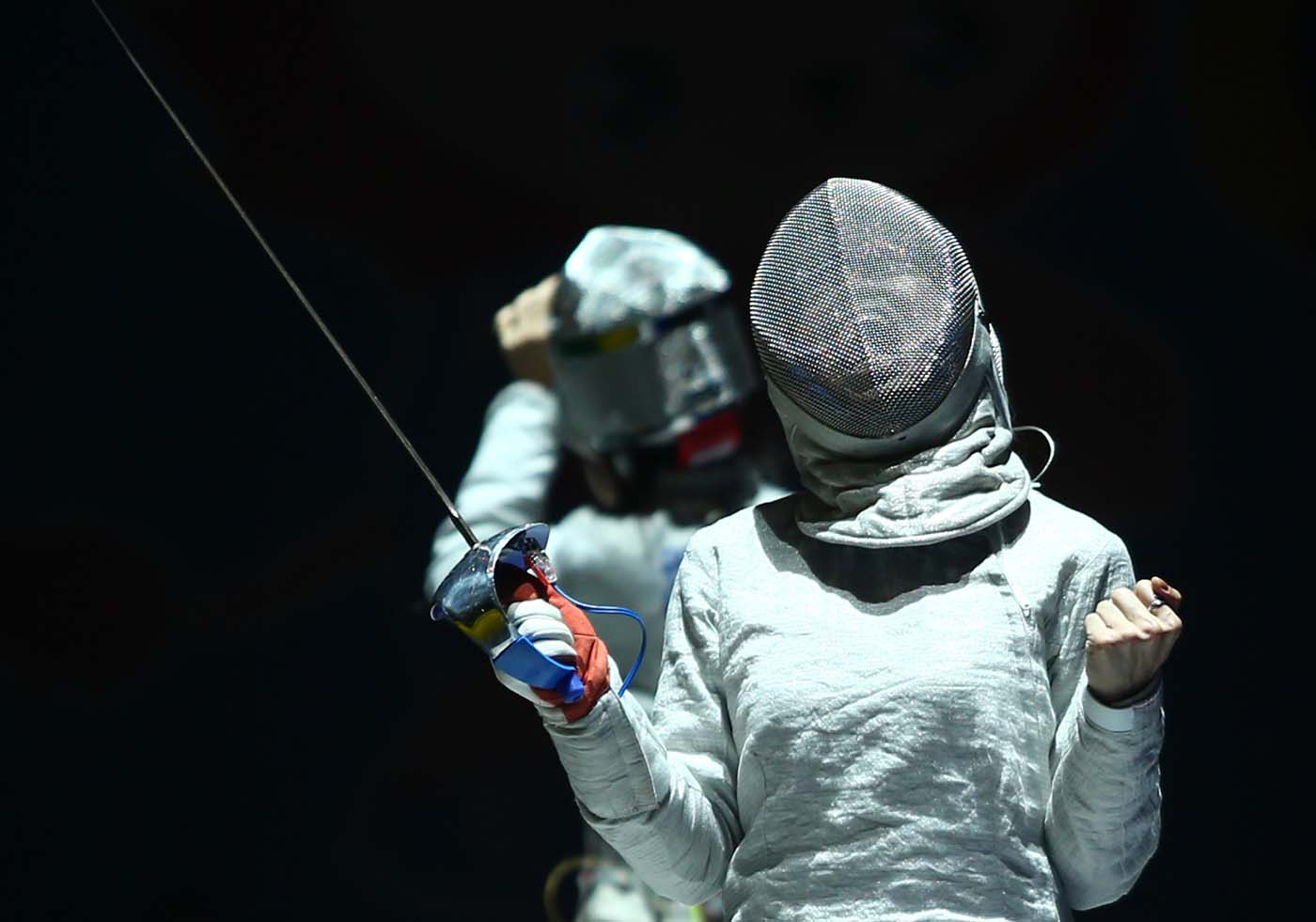 Vietnam's Nguyen Thi Thuy celebrates after getting a point during her match against Thailand's Sirawalai for her team to win gold in fencing, women's team sabre. Bazuki Muhammad for Action Images via Reuters