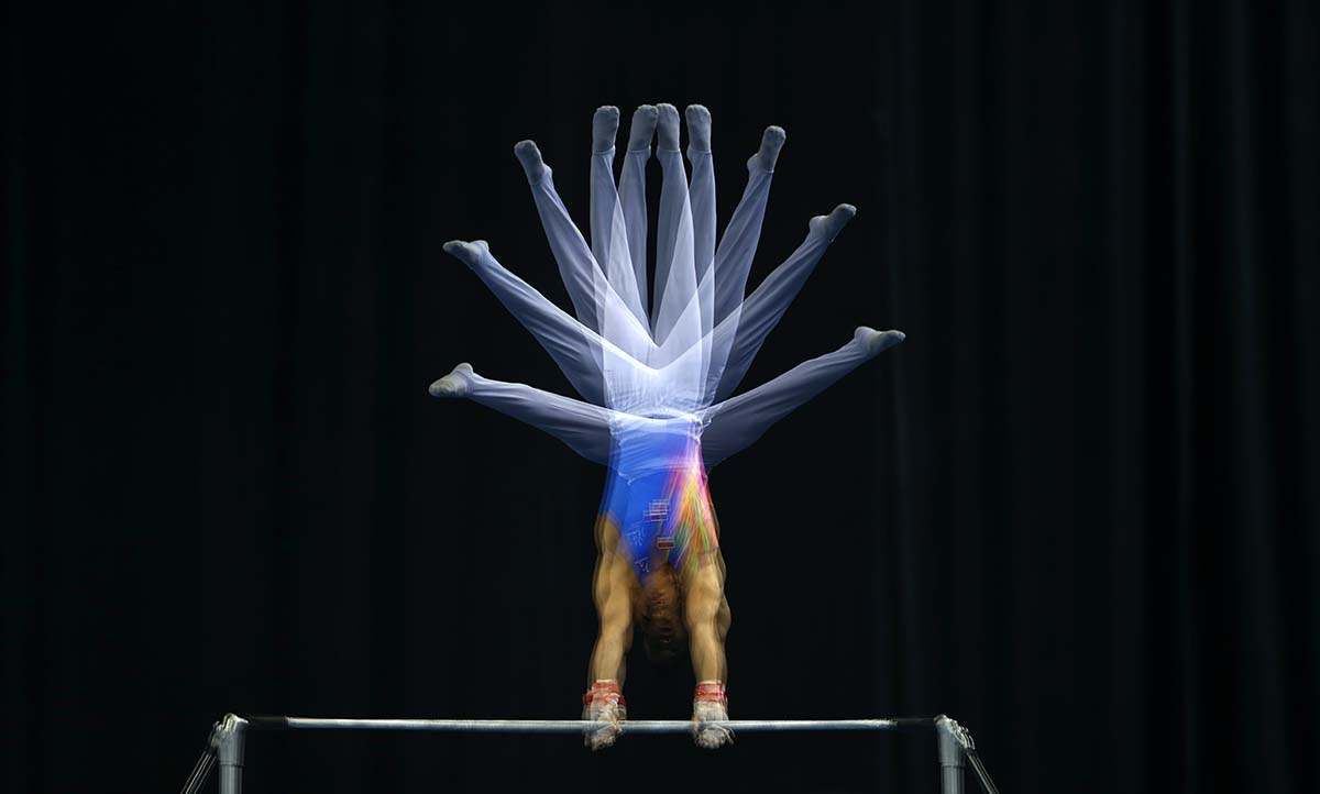 In this multi-exposed picture, Indonesia's Muhammad Try Saputra warms up before competing in the gymnastics final, men's horizontal bar. Bazuki Muhammad for Action Images via Reuters