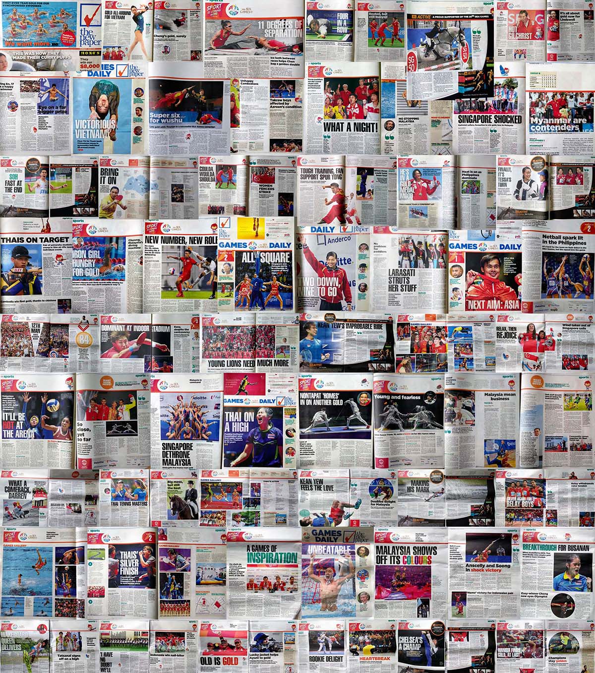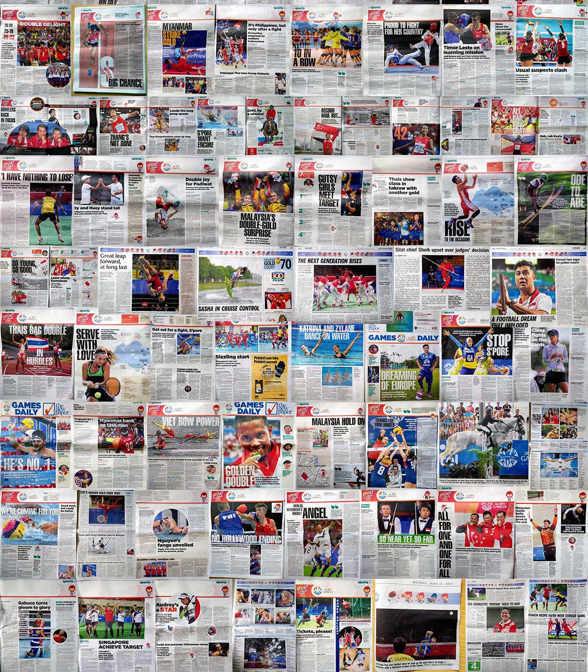 Singapore's Premila Hirubalan (4th R) jumps into the arm of her team's captain Micky Lin after winning against Malaysia for gold in netball. Bazuki Muhammad for Action Images via Reuters